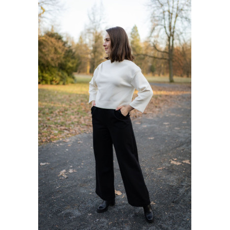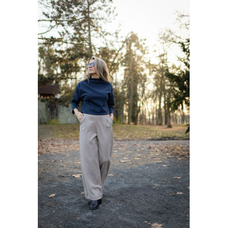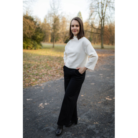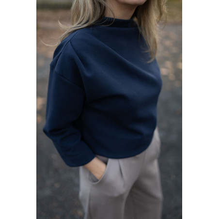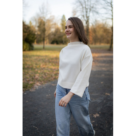 Halenka je ušitá ze stejného kvalitního interlockového úpletu střední gramáže (280 g/m²), který je hladký, příjemný na těle a zároveň krásně drží tvar. Díky tomu vynikne střih i designové detaily.